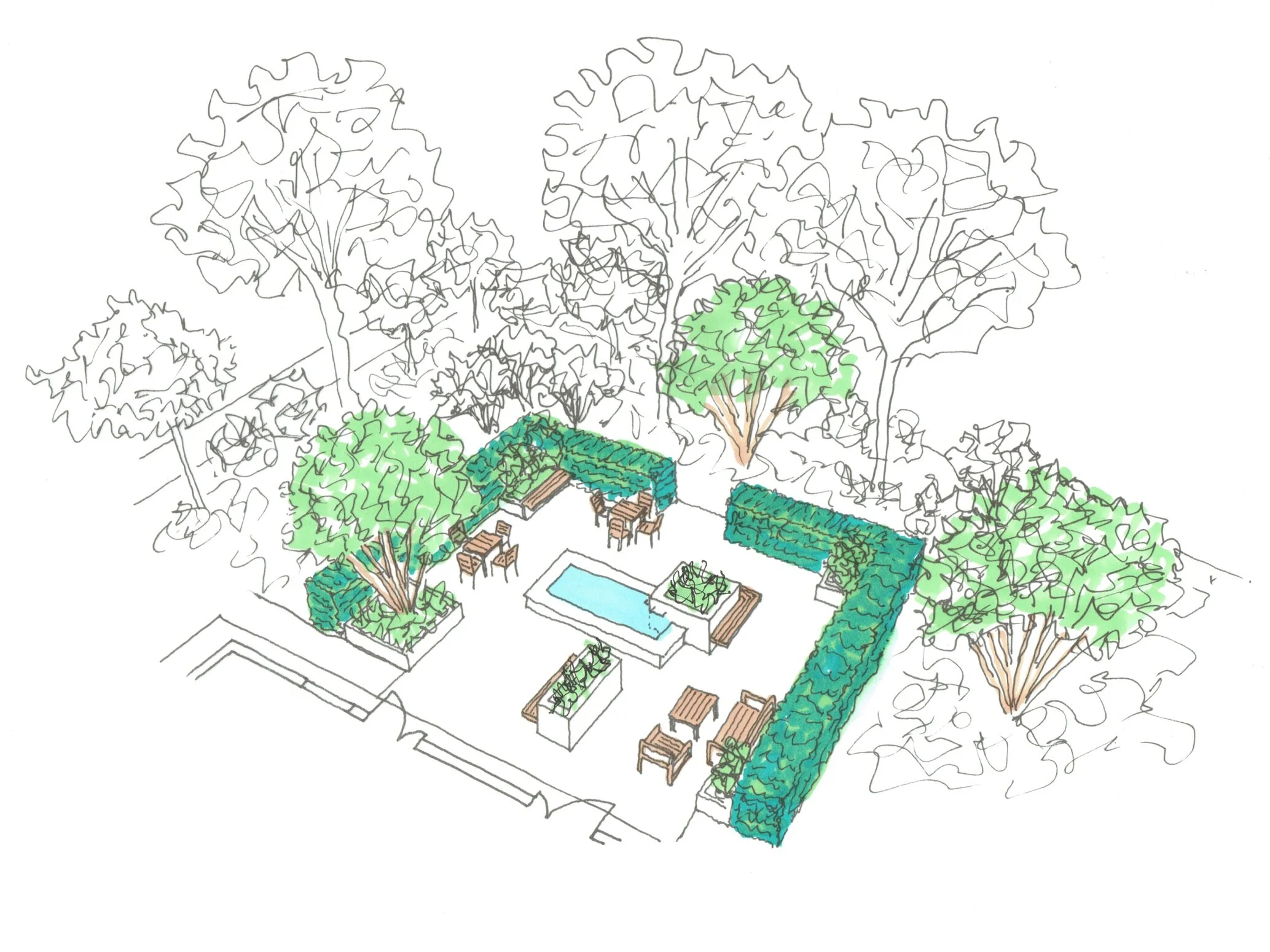 The Chartered Association of Building Surveyors approached me to redesign the landscaping around their office headquarters as part of their sustainable refurbishment project by Stagg Architects, which aims to reduce carbon emissions in the building by 90%. The new landscape will create a formal garden for eating, working and relaxation, a sunny sitting spot, vibrant planting around the building with new trees to create summer shade, and woodland planting to replace the grass below the existing mature trees that surround the site. Plants around the perimeter are specified to absorb pollution as the site is surrounded by roads. See my article written for Building Engineer discussing this project in the context of wider discussions on biodiversity and biophilia here.